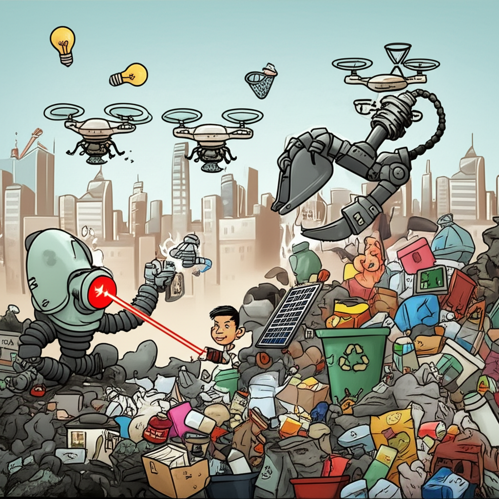 2. Kecerdasan Buatan (AI) dan Big Data: AI menganalisis data besar dari berbagai sumber—mulai dari sensor tempat sampah, pola konsumsi masyarakat, hingga kondisi lalu lintas—untuk memprediksi pola timbulan sampah, mengidentifikasi jenis limbah dominan, dan menyusun strategi pengelolaan yang lebih cerdas. AI juga dapat digunakan dalam fasilitas daur ulang otomatis untuk menyortir material dengan kecepatan dan akurasi tinggi.